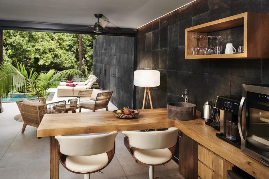 Dressing, canapé, cave à vin, machine à glace… chaque équipement reflète l’exigence d’un service 5 étoiles. À noter que l’un des Pool Lodges est accessible aux personnes à mobilité réduite, sans compromis sur le confort.