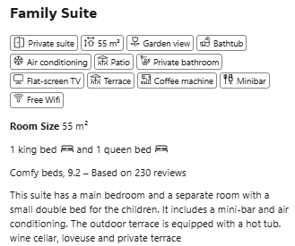 From the moment you enter, natural tones subtly combined with wooden elements create a warm and relaxing ambiance, perfect for reconnecting after a day of exploring the island. The suite features two comfortable beds, including a king-size bed (180×200 cm) and a second bed (140×190 cm), ensuring restful sleep for everyone. A cozy sitting area with a sofa completes the living space, offering a perfect spot for family relaxation.